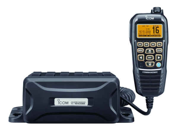 O IC-M400BB é formado por dois módulos na configuração "caixa preta". Todas as funções do rádio, incluindo a operação DSC podem ser acionadas pelo microfone COMMANDMICIV™, HM-195B/SW e o módulo de RF pode ser instalado em um local oculto.
